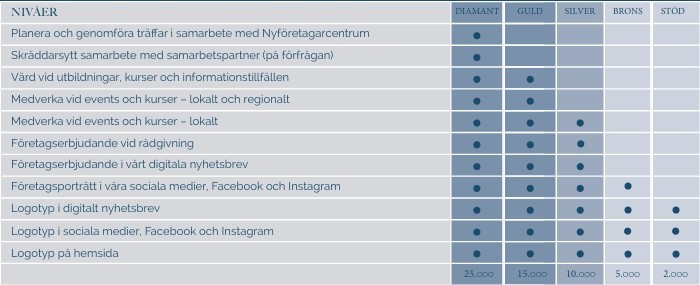 Nedan ser du de olika stödnivåerna och som partner har du tillgång till olika paket.