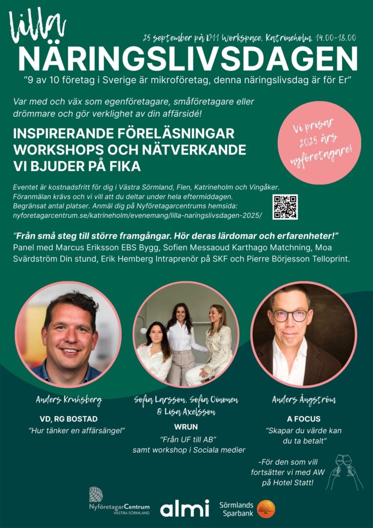 Årets Nyföretagare Västra Sörmland 2025 – Moez Rekik och Sofien Messaoud med Karthago Matchning Under Lilla Näringslivsdagen 25 september delades priset för Årets Nyföretagare 2025 ut. Detta i samarbete med Sörmlands Sparbank som delar ut en check på 25 000kr. Moez och Sofien tog steget till eget trots fast/trygg anställning. Dem hade ett mål – […]