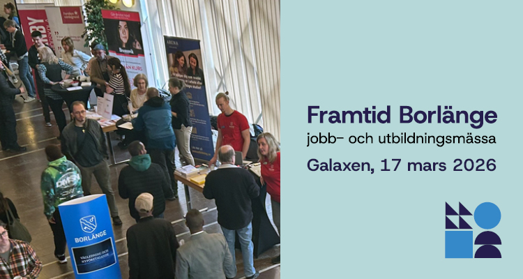 Den 17 mars kl 14.00 – 16.00 på Galaxen i Borlänge kan du träffa oss på mässan Framtid Borlänge. Är du på väg in på arbetsmarknaden eller vill du kanske byta inriktning i yrkeslivet? Välkommen till jobb- och utbildningsmässan Framtid Borlänge! Mer information finns på denna länk: Framtid Borlänge – Borlänge