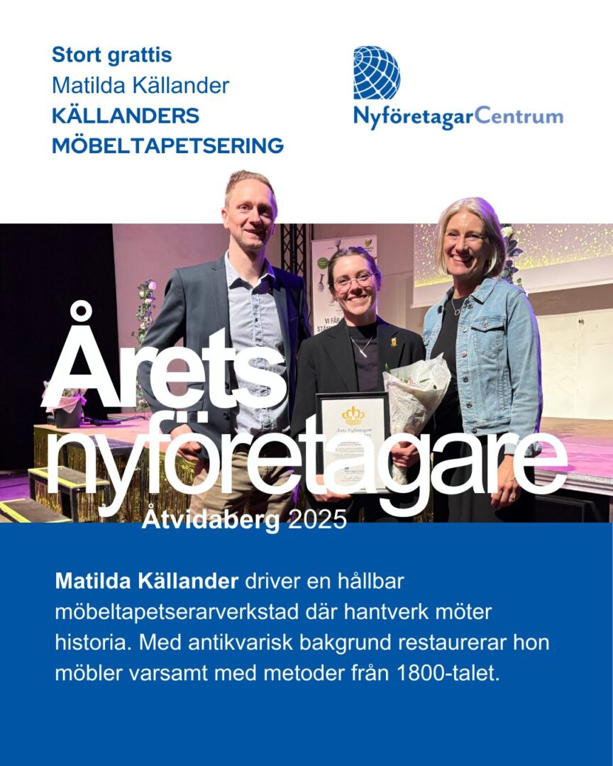 Vi säger stort grattis till Matilda Källander, möbeltapetserare med passion för hantverk och hållbarhet, som utsetts till Årets Nyföretagare i Åtvidaberg! ![]()