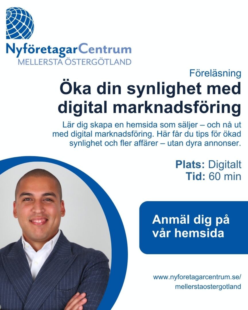Du får bland annat lära dig hur du skapar en konverteringsdrivande hemsida & öka din synlighet med digital marknadsföring. På bara 60 minuter får du konkreta verktyg för att bygga en bättre webbplats, öka din synlighet och skapa fler affärer, utan att behöva lägga stora pengar på annonser.”