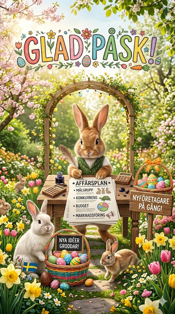Vi hoppas att ni får en fantastisk påskhelg fylld med både vila och inspiration. Det är otroligt roligt att följa alla spännande affärsplaner som växer fram just nu. Vi önskar er stort lycka till med det fortsatta arbetet och hoppas att era idéer får riktig fart under vårsolen!
