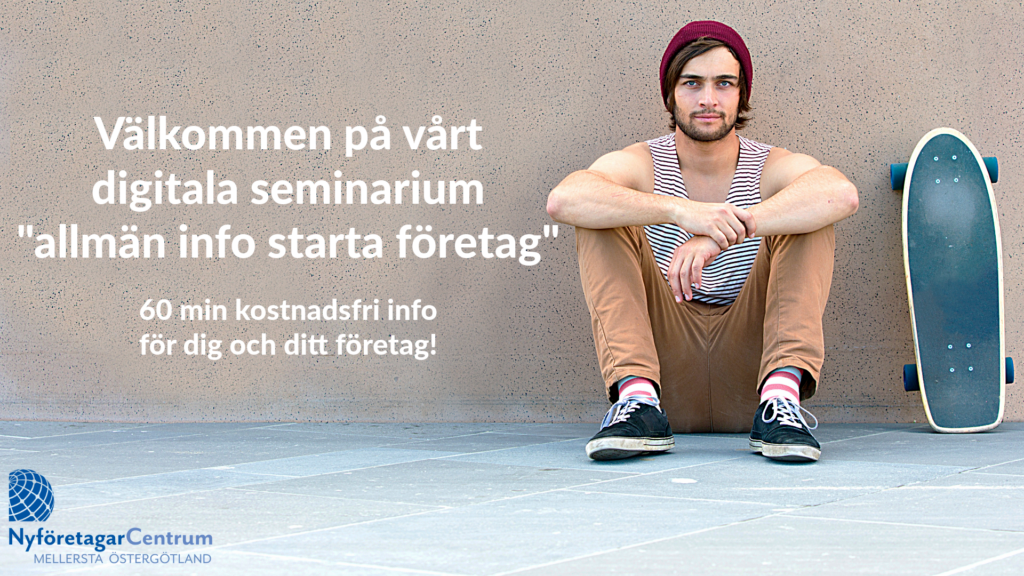 Evenemanget är 60 minuter och kostnadsfritt, men avboka om du får förhinder (det gör du via länken i din bokningsbekräftelse mailad från bokning@nyforetagarcentrum.se).