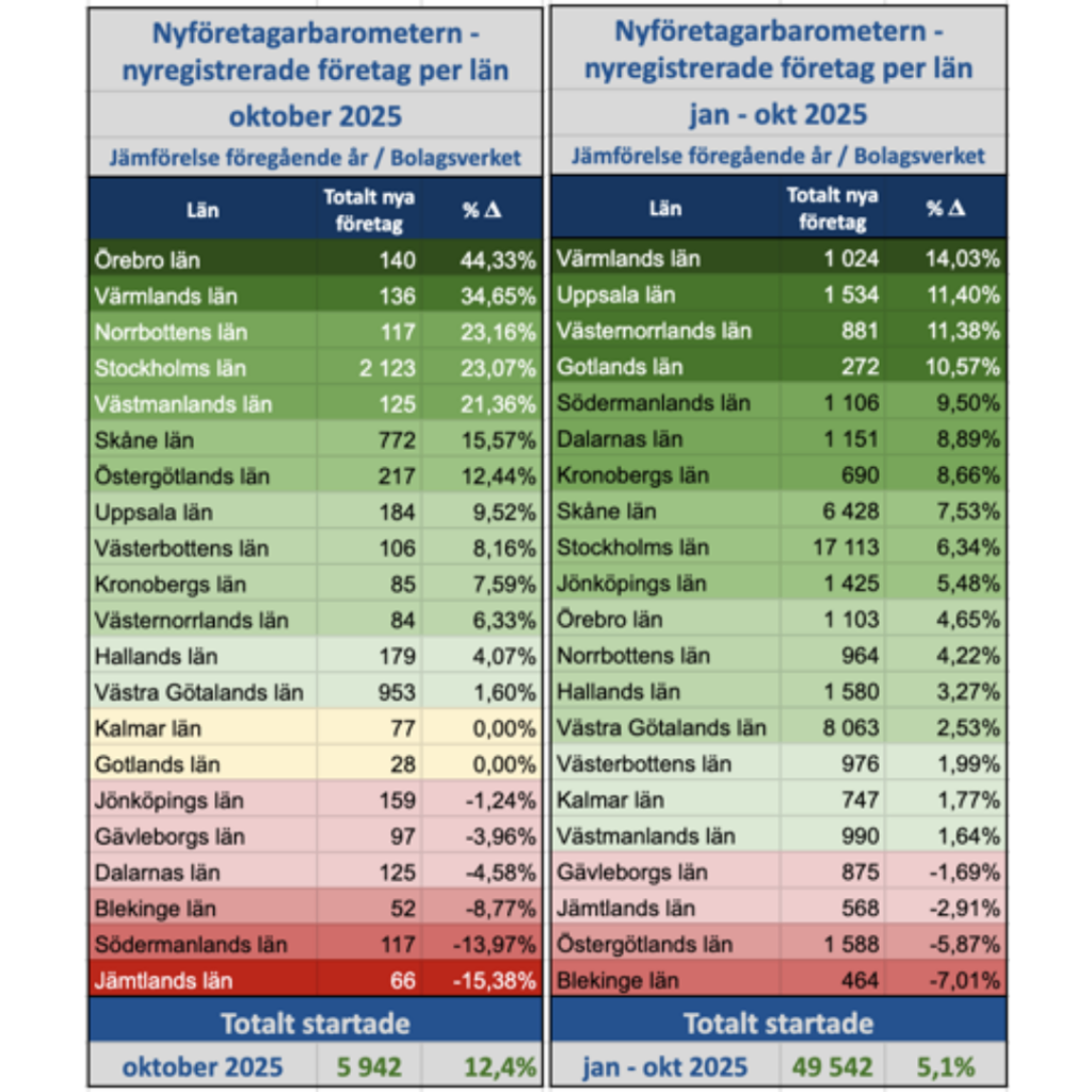 Under oktober månad ökade nyföretagandet med 12,4% jämfört med oktober föregående år, visar NyföretagarCentrum Sveriges Nyföretagarbarometer. Det innebär att en viss stabilisering har skett då det nu är tredje månaden i rad som nyföretagandet ökat i landet. För året finns en ökning på 5,1%.