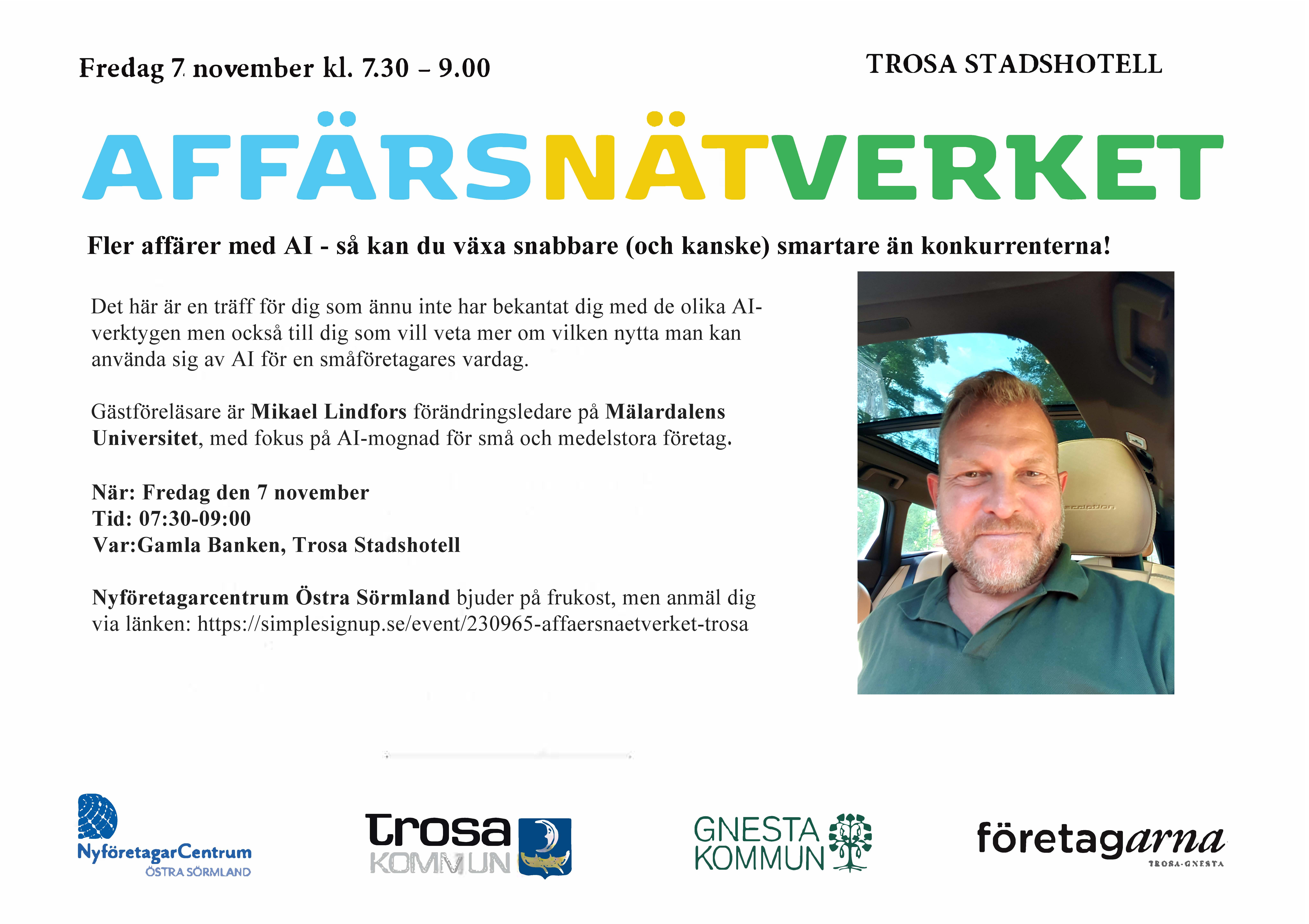 Anmäl dig till Anna Lisjö, anna.lisjo@nyforetagarcentrum.se