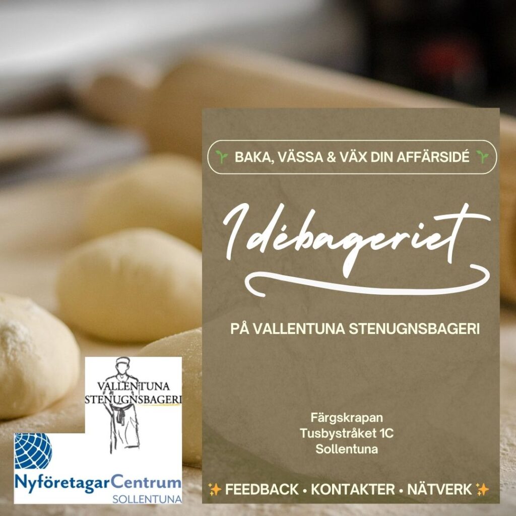 Välkommen till Idébageriet – en öppen och kreativ träffpunkt där du kan bolla din idé med rådgivare från NyföretagarCentrum Sollentuna och möta andra som också står i startgroparna.