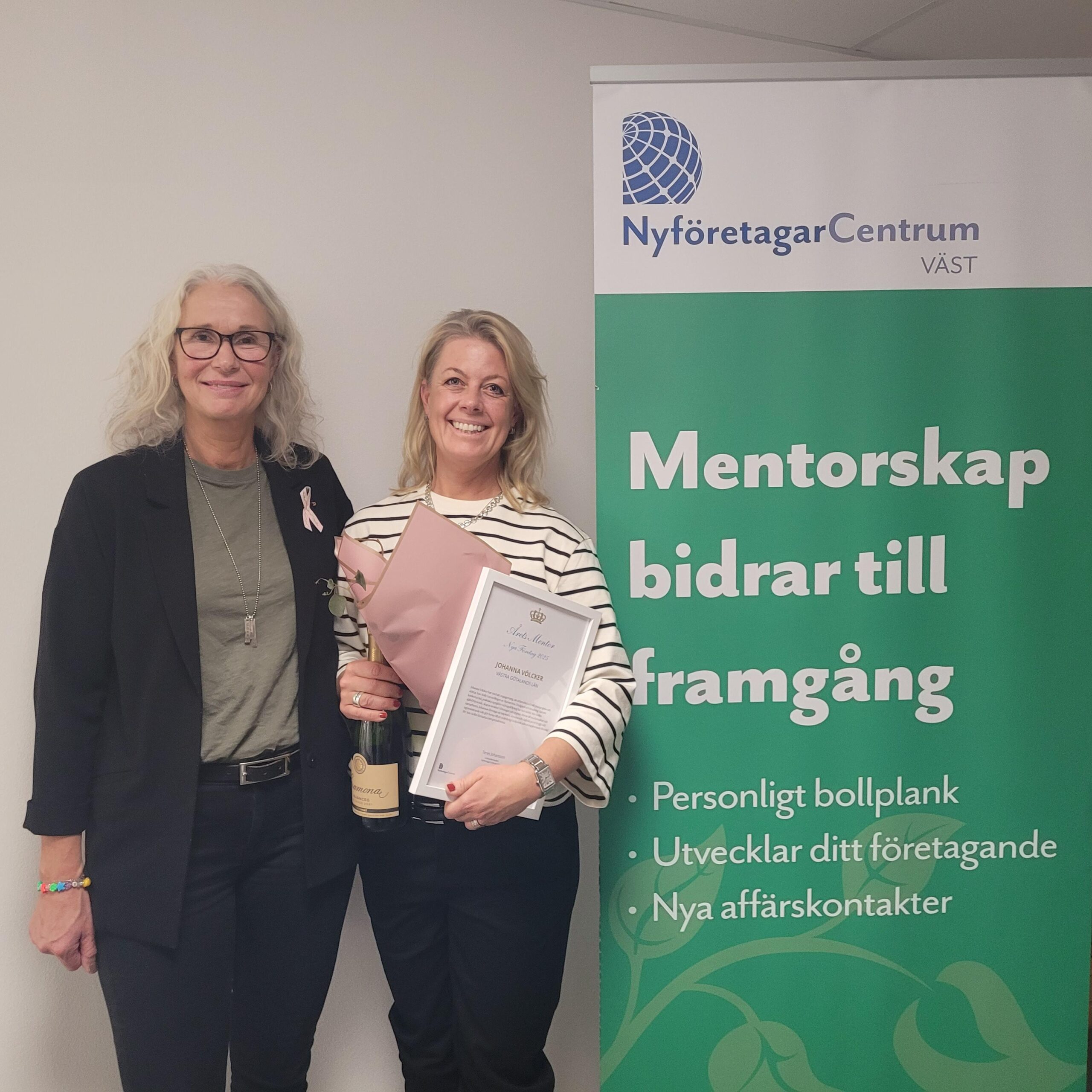 Ann-Sofie Ericsson (till vä) som driver Åkerströms Trädgård & Inredning nominerade sin mentor Johanna Völcker, Nord Kommunikation AB. Motiveringen lyder enligt nedan. Johanna Völcker har med sitt engagemang, sin erfarenhet och sitt pedagogiska sättstöttat Ann-Sofie i utvecklingen av Åkerströms Trädgård och Inredning. Genomkonkreta råd, praktiska uppgifter och uppföljning har hon stärkt Ann-Sofiessjälvförtroende, skapat struktur i företaget […]